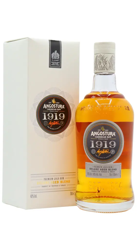 Angostura 1919 is a specially blended multiple award winning rum, which celebrates a very particular date in the development of the rum industry in Trinidad & Tobago, as well as the Caribbean. After a fire in 1932, which destroyed the Government Rum Bond, the master blender of Fernandes Distillers, J. B. Fernandes, bought the charred casks, only to discover they had been filled in the year 1919. The prized rum was skillfully blended and called "1919 Aged Rum. "