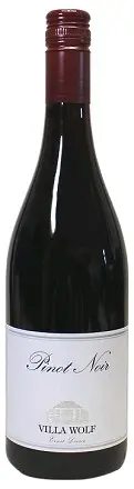 Wine maker notes Villa Wolf Pinot Noir is warm and medium-bodied, with a firm acid structure. Its dark cherry fruit is juicy, ripe, and forward, with a spicy mid-palate. Six months of barrique aging gives the wine a smoky depth and a nice touch of earthy tannins. This is a very grown-up Pinot Noir for the price, and it’s another excellent wine for everyday dining.