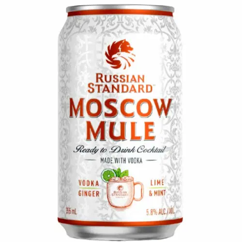 This ready to drink authentic Moscow Mule is made with the premium Russian Standard Vodka brand. Like most recipes, it's the quality of the ingredients that makes the drink. In this case, nothing but the best is used to craft this classic cocktail. Traditionally served in a copper mug and garnished with a wedge of lime.