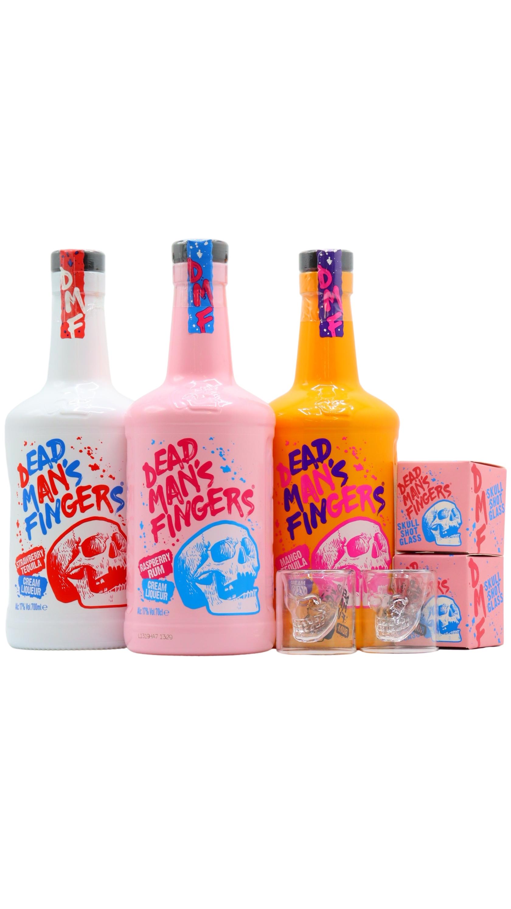A bundle of 3 x 70cl bottles from the Dead Man's Fingers Cream Liqueur range including Raspberry Rum, Strawberry Tequila & Mango Tequila Cream Liqueur. Raspberry Rum Cream Liqueur - Think of it as a little bit of luxury coming your way; luxury with that Dead Man’s Fingers bite. Dead Man's Fingers Raspberry Rum Cream Liqueur is smooth and velvety with aromas of fresh raspberries. Strawberry Tequila Cream Liqueur - Awesome served over ice, as a shot or mixed up in a Dead Man's cocktail. You decide. Mango Tequila Cream Liqueur - Dead Man's Fingers Mango Tequila Liqueur offers a little bit of Tropical luxury. . . luxury with that Dead Man's Fingers edge. Smooth, velvety and packed with notes of juicy mangos blended with cream.