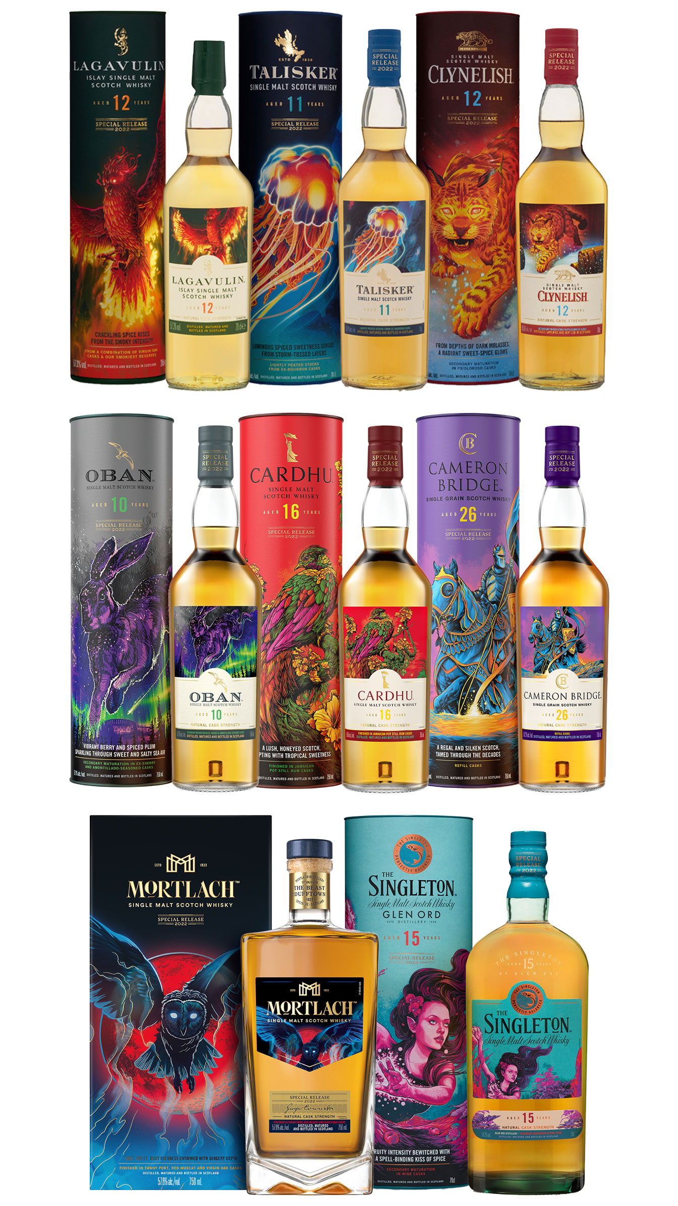 Introducing Elusive Expressions. A hand picked collection of eight exquisite Scotch Whiskies. Each inspired by the stories of Mythological and Mysterious creatures, pushing the boundaries of flavour. . . The complete collection of the 2022 Diageo Special Releases which include the following: Lagavulin 12 Year Old - 57. 3% Talisker 11 Year Old - 55. 1% Clynelish 12 Year Old - 58. 5% The Singleton Of Glen Ord 15 Year Old - 54. 2% Oban 10 Year Old - 57. 1% Cardhu 16 Year Old - 58% Mortlach - 57. 8% Cameronbridge 26 Year Old - 56. 2%