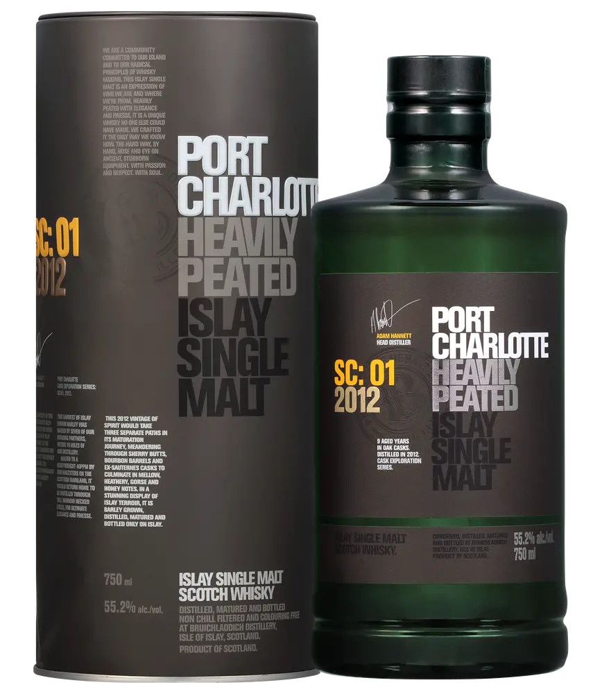 BRUICHLADDICH SCOTCH SINGLE MALT PORT CHARLOTTE HEAVILY PEATED SC:01 SHERRY CASK 2012 750ML