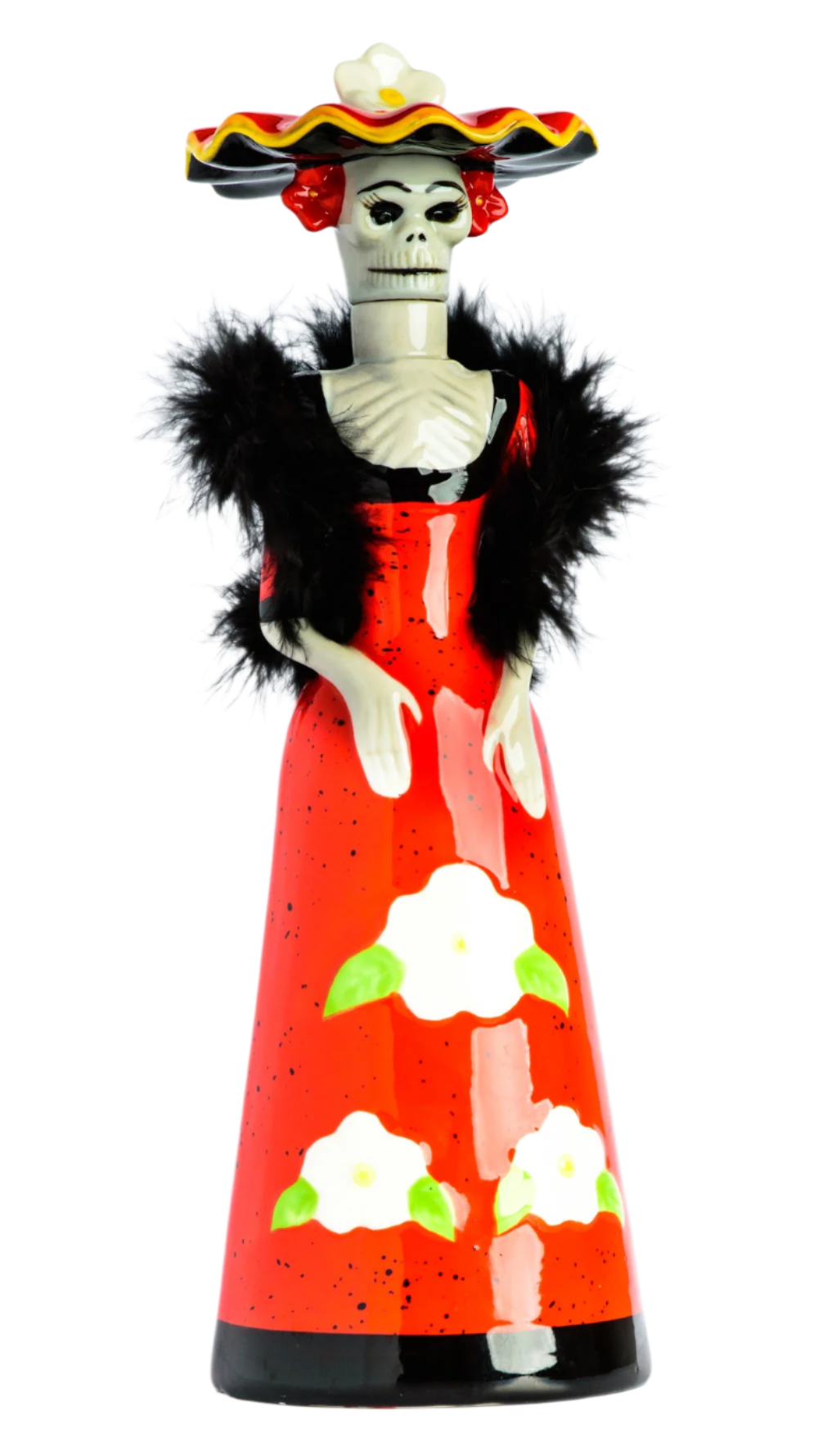 This artwork was created around 1910-1913 by José Guadalupe Posada in an etching called “La Calavera Catrina,” originally known as “La Calavera Garbancera. ” She was created as a satirical image. Now we adapt Mexico's great folflore into a one of a kind Tequila Package, Dona Celia Tequila. Made out of ceramic and hand painted designs, this doll not only has a beautiful design but has a high quality 100% Agave Tequila to compliment inside.